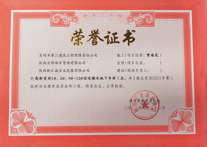 2021年度陜西省建筑優(yōu)質(zhì)結(jié)構(gòu)工程(高新首府1#、2#、9#-12#住宅樓及地下車(chē)庫(kù))