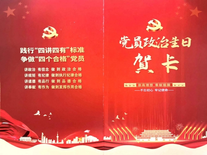 集團(tuán)公司總部黨支部為黨員集體過政治生日,向每名黨員贈(zèng)送了政治生日賀卡,號(hào)召大家牢記初心使命,履職盡責(zé)擔(dān)當(dāng),充分發(fā)揮好黨員的先鋒模范和帶頭示范作用,砥礪前行,繼續(xù)奮斗,以實(shí)際行動(dòng)迎接黨的二十大勝利召開!
