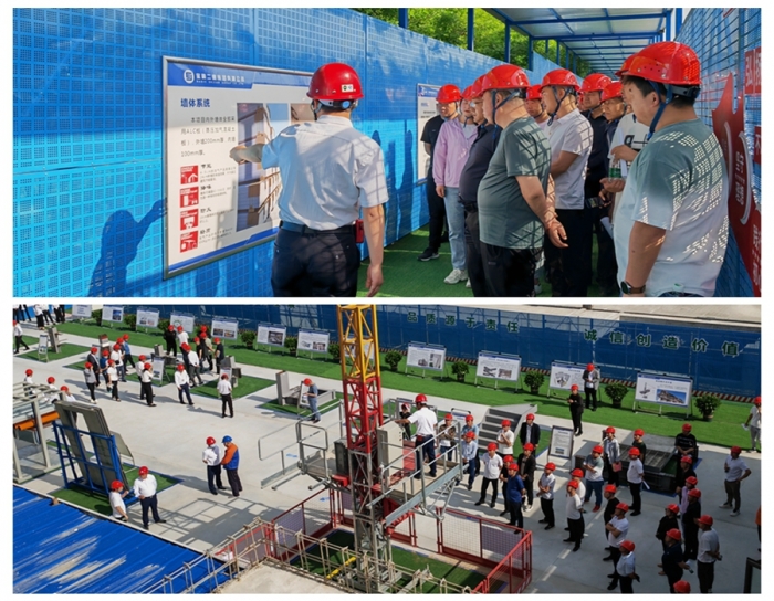 觀摩現(xiàn)場以視頻、展板、實體、樣板等多方位形式,對綠色建造、智能建造、關(guān)鍵施工技術(shù)共計10余項創(chuàng)新技術(shù)進(jìn)行集中展示,全面展示了裝配式鋼結(jié)構(gòu)體系、綠色建筑材料的應(yīng)用、文明施工管理現(xiàn)代化模式。