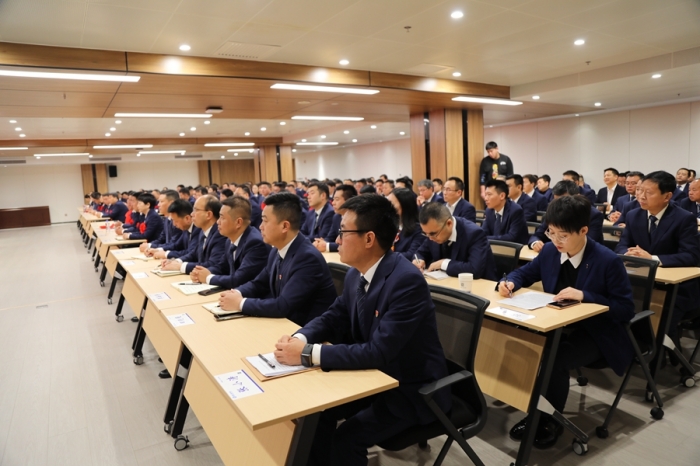 集團公司高層領(lǐng)導、中級管理人員、受表彰獎勵的優(yōu)秀單位和個人、總部全體及2023年度新員工,共計300余人參加了會議。副總經(jīng)理、總會計師嚴海軍主持會議。