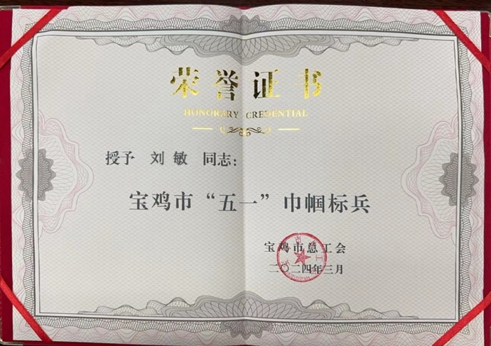 3月8日,在寶雞市總工會(huì)召開的第七屆二次女職委全委會(huì)上,第十七項(xiàng)目部女職工劉敏被授予“五一巾幗標(biāo)兵”稱號(hào)。集團(tuán)公司始終為女職工提供干事創(chuàng)業(yè)的廣闊舞臺(tái),多年來,先后有14名女職工獲得各級(jí)各類巾幗標(biāo)兵稱號(hào),2個(gè)集體被授予“五一巾幗標(biāo)兵崗”。