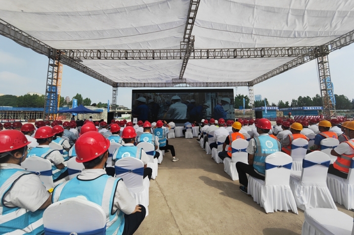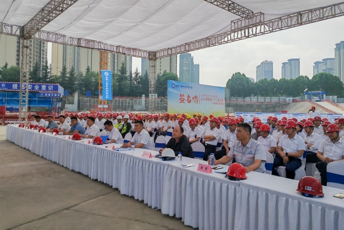 集團(tuán)公司黨委副書記、總經(jīng)理?xiàng)罱?,副總?jīng)理、總會計(jì)師嚴(yán)海軍,副總經(jīng)理申小龍出席儀式。集團(tuán)公司總部相關(guān)部門,寶雞片區(qū)各項(xiàng)目部負(fù)責(zé)人、專職安全管理人員及現(xiàn)場施工人員共計(jì)150余人參加了本次活動,儀式由副總工程師、工程管理部經(jīng)理郭為群主持。